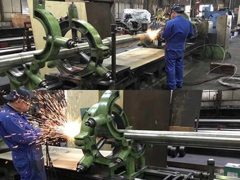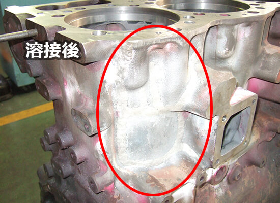 カムシャフトの激しい摩耗部位にTIG硬質肉盛溶接を行っています。